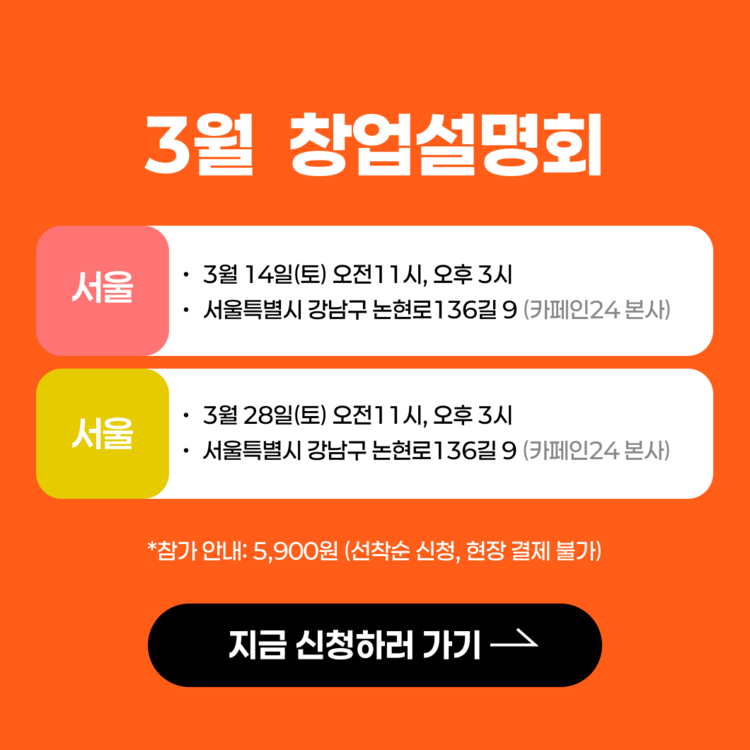 '26.3월 14일(토) 오전 11시, 오후 3시 서울 창업 설명회! 20명 한정