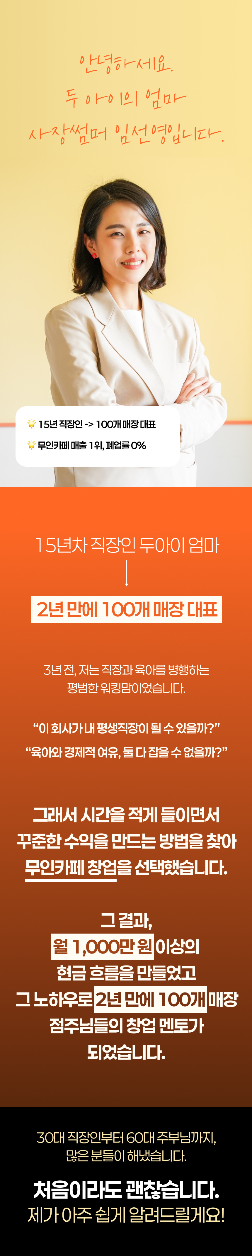 창업 고수 <사장썸머>가 직접! 누구보다 알기 쉽게 무인카페 창업의 실전 노하우를 알려드립니다.